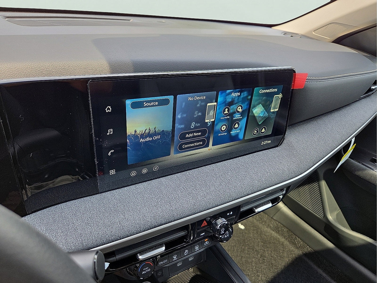 - Radio: AM/FM/SiriusXM Audio System -inc: 12.3" color touchscreen display w/4 speakers, Bluetooth® hands-free phone system, streaming audio via Bluetooth®, NissanConnect featuring wireless Apple CarPlay, wireless Android Auto, Siri eyes free and hands-free text messaging assistant, audio and Bluetooth® steering wheel switches