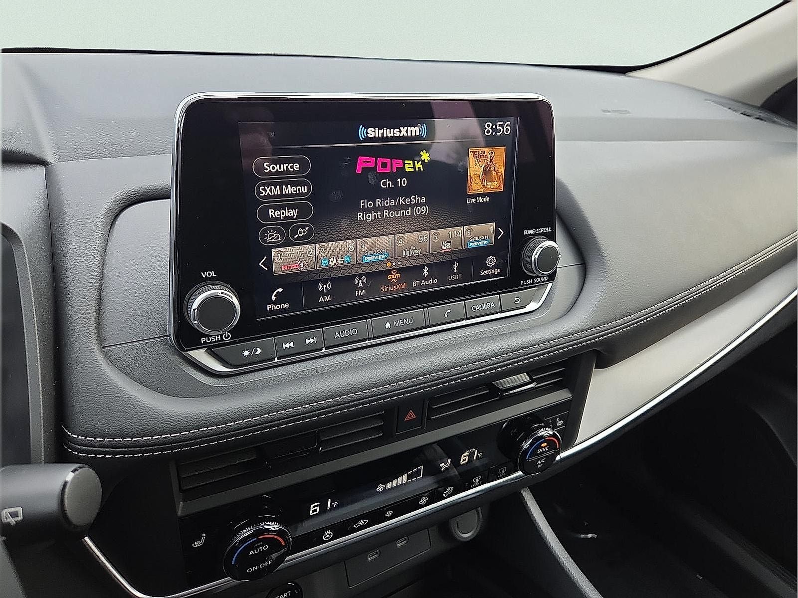 - Radio: AM/FM NissanConnect -inc: 6 speakers plus 2 tweeters, Apple CarPlay, Android Auto, 8" color touch screen display, Bluetooth®, 2 front USB type-C, Wi-Fi hotspot and NissanConnect Services powered by SiriusXM