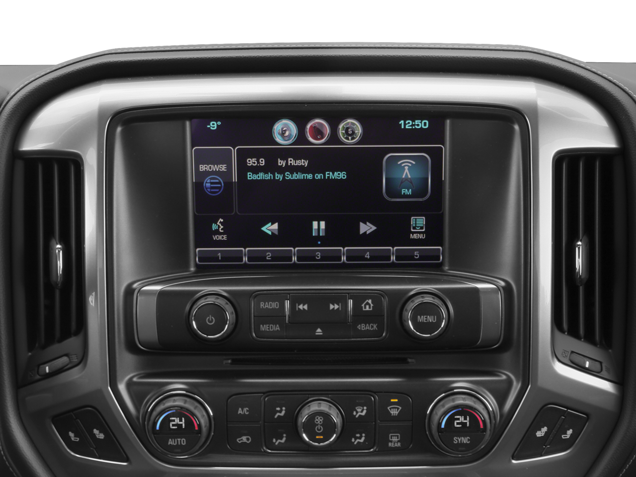 - Audio system, Chevrolet MyLink Radio with 8" diagonal color touch-screen, AM/FM stereo with seek-and-scan and digital clock, includes Bluetooth® streaming audio for music and select phones; USB ports; auxiliary jack; voice-activated technology for radio and phone; and Shop with the ability to browse, select and install apps to your vehicle. Apps include Pandora, iHeartRadio, The Weather Channel and more. (Upgradeable to (IO6) Chevrolet MyLink 8" Diagonal Color Touch audio system with Navigation.)