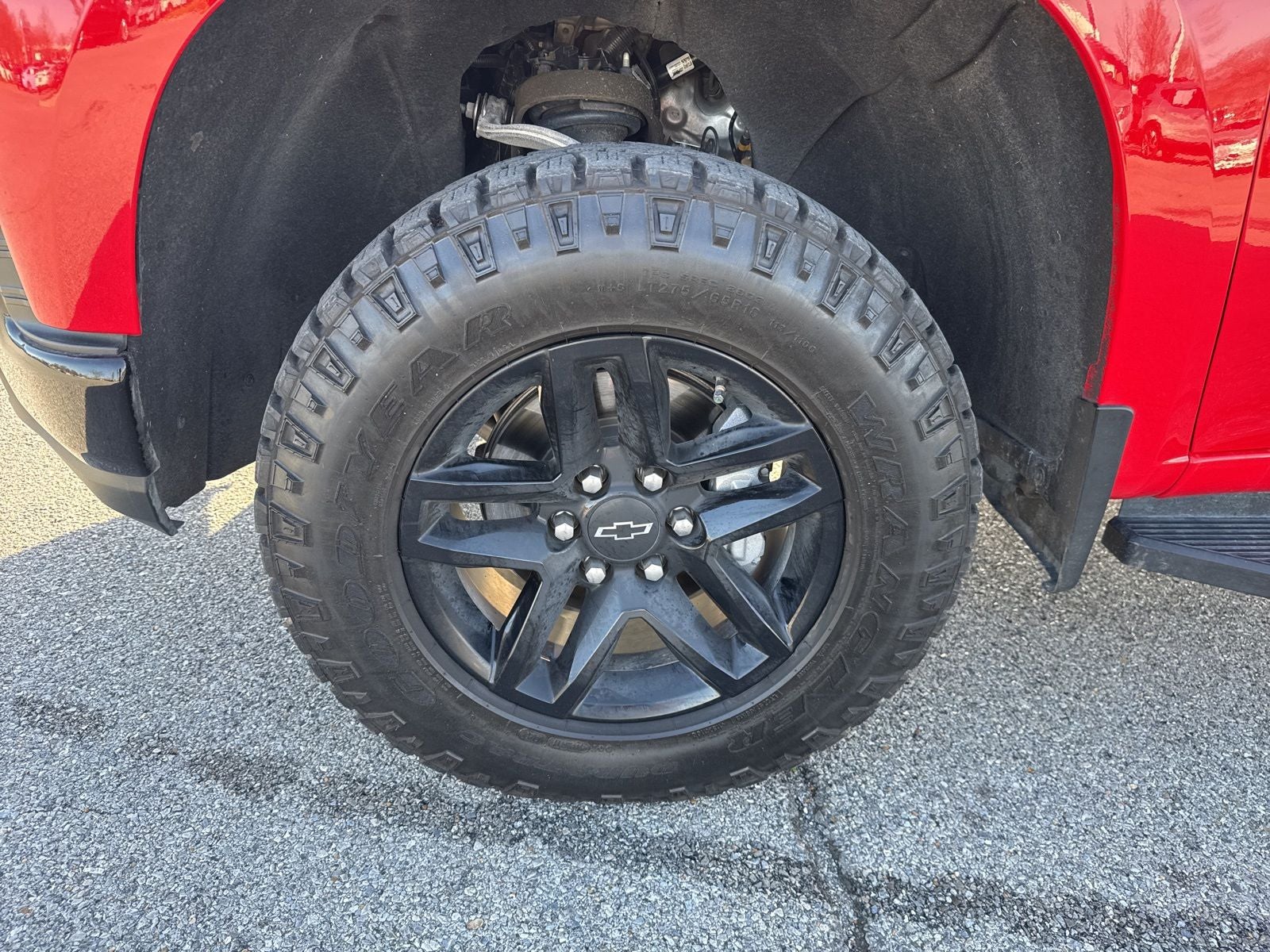 - Tires, LT275/65R18C MT blackwall Goodyear Wrangler DuraTrac