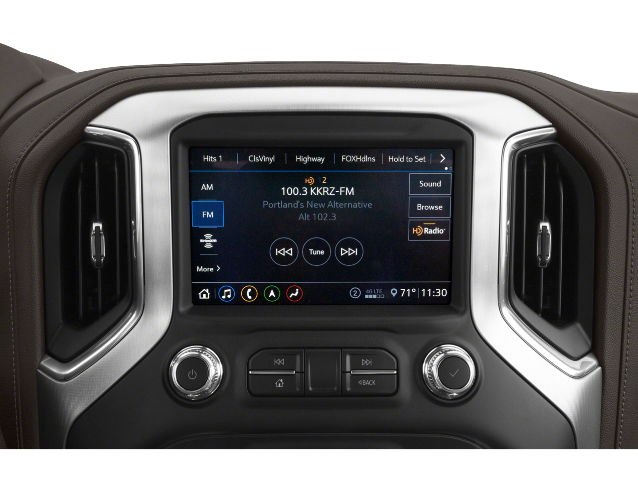 - Audio system, Premium GMC Infotainment System with 8" diagonal color touch-screen includes multi-touch display, AM/FM stereo, Bluetooth® streaming audio for music and most phones; featuring wireless Android Auto and Apple CarPlay capability for compatible phones, advanced voice recognition, in-vehicle apps, personalized profiles for infotainment and vehicle settings (Includes (PZ8) Hitch Guidance with hitch view.)